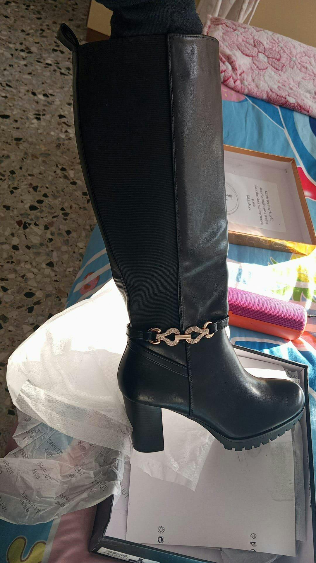Spedizione velocissima! Gli stivali bellissimi proprio come gli cercavo , personale molto gentile è disponibile è il mio primo acquisto da loro consigliatissimi Top.